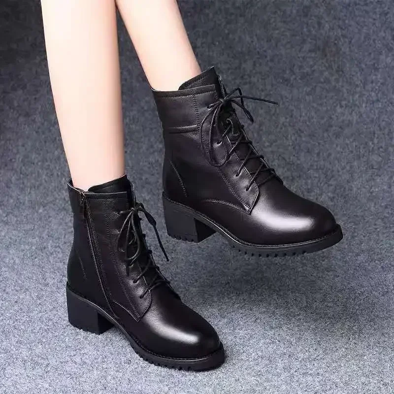 2025 Women's Shoes Luxury Chelsea Boot Women Leather Boot Chunky Winter Shoe Platform Ankle Boots Thick Heel Brand Designer