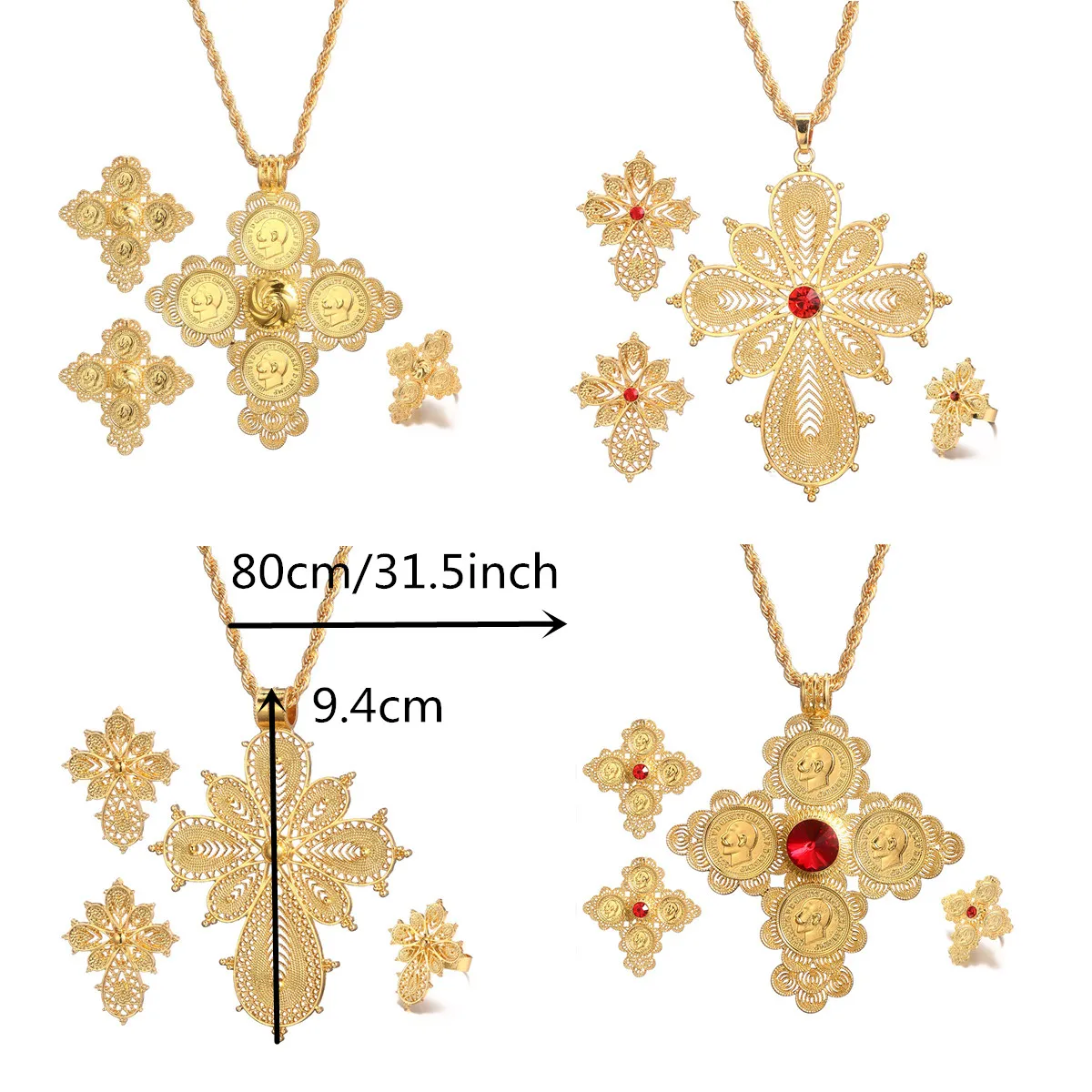 Ethiopian Necklace Earrings Ring African Bridal Jewellery Sets Habesha Eritrea Wedding Coin Jewelry