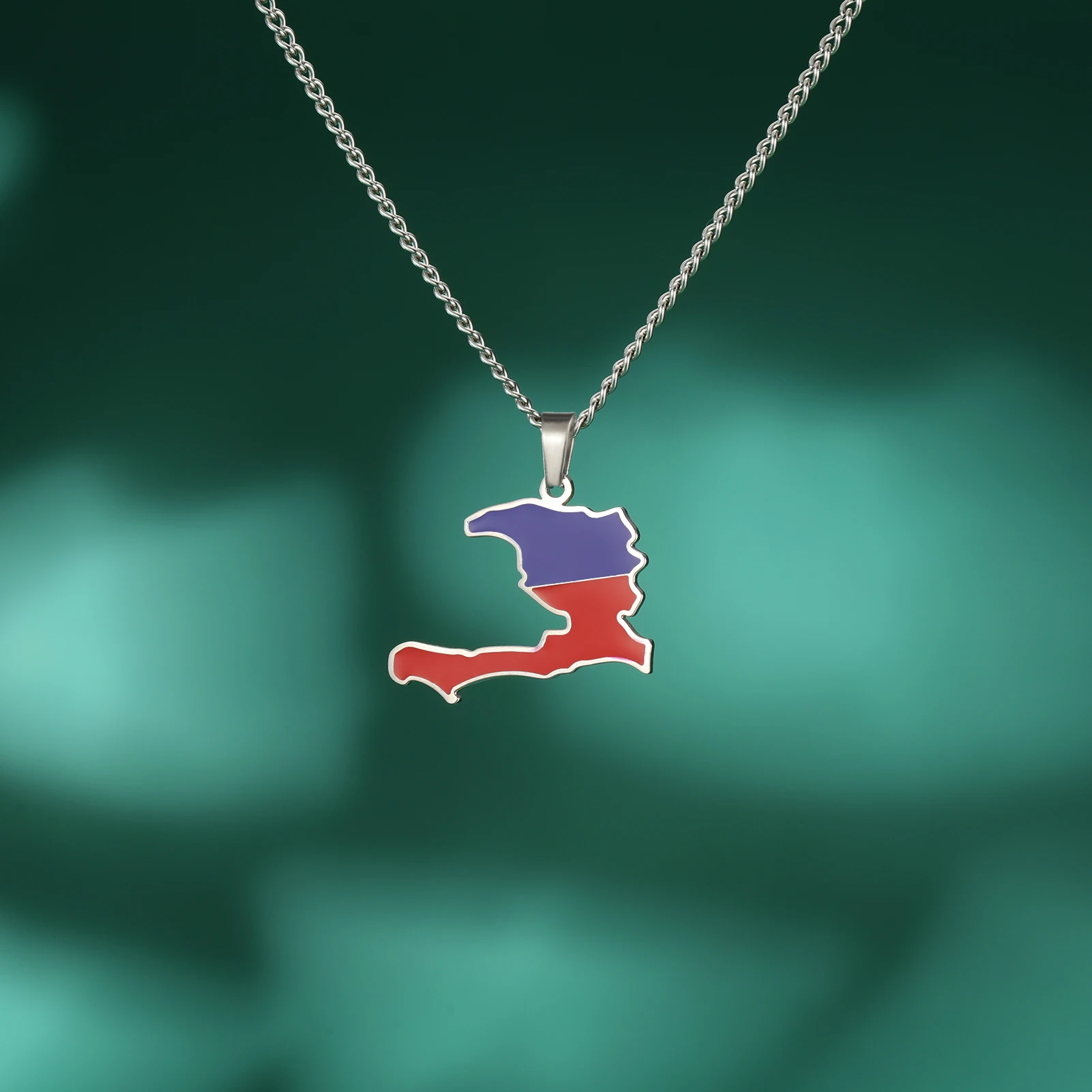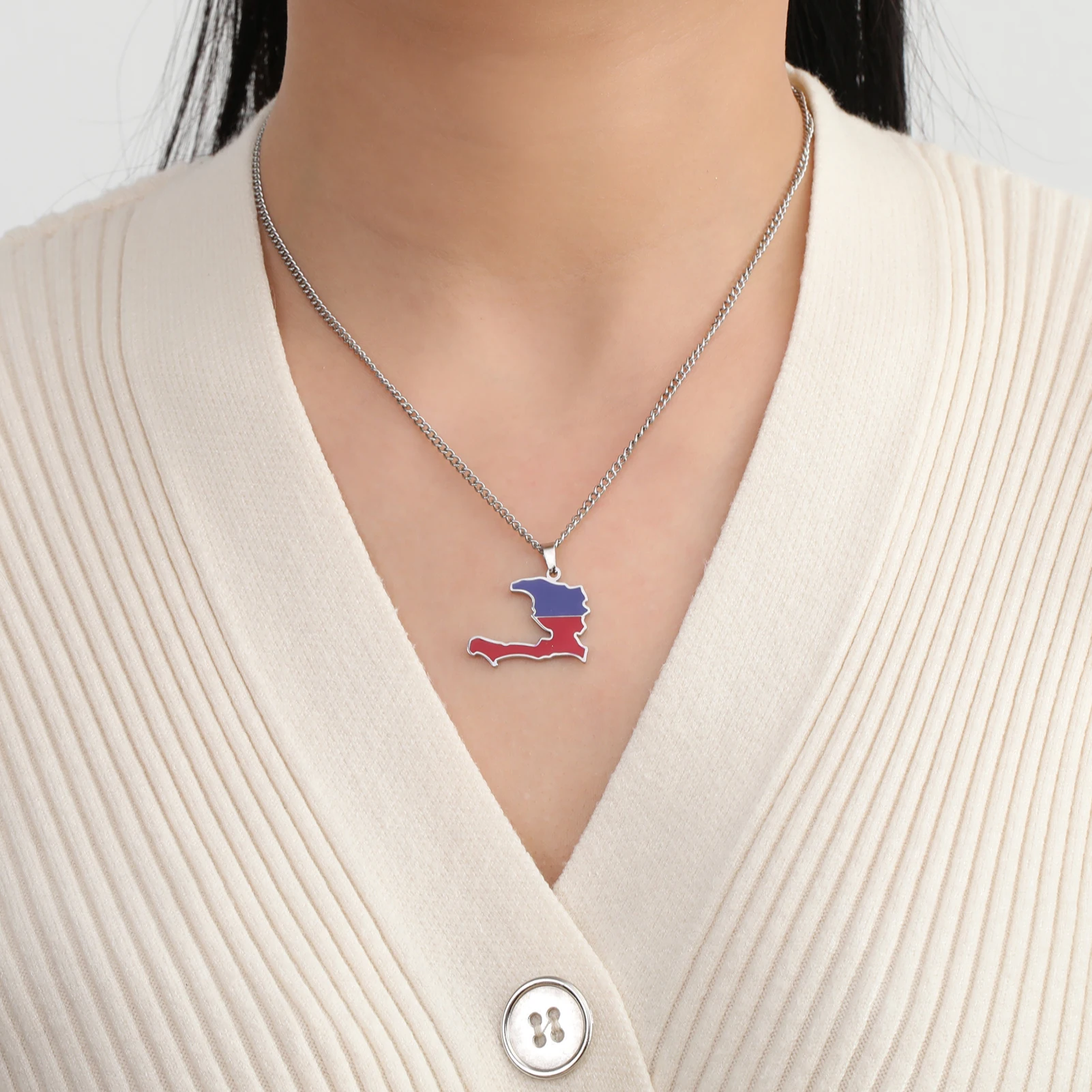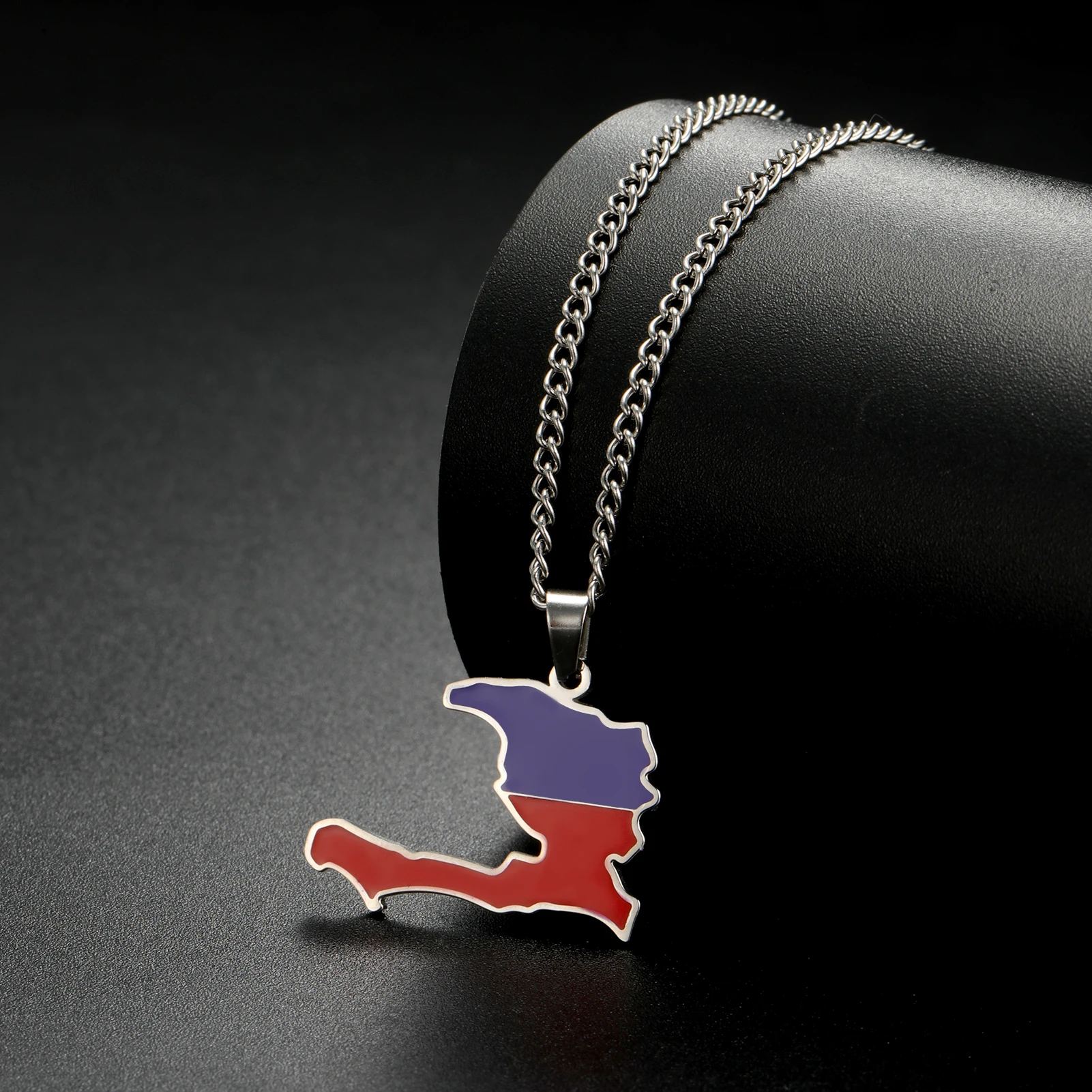 Haiti Map Color of the Haitian Flag Creative Design Pendant Necklace Women Men Stainless Steel Chain Jewelry Birthday Gift