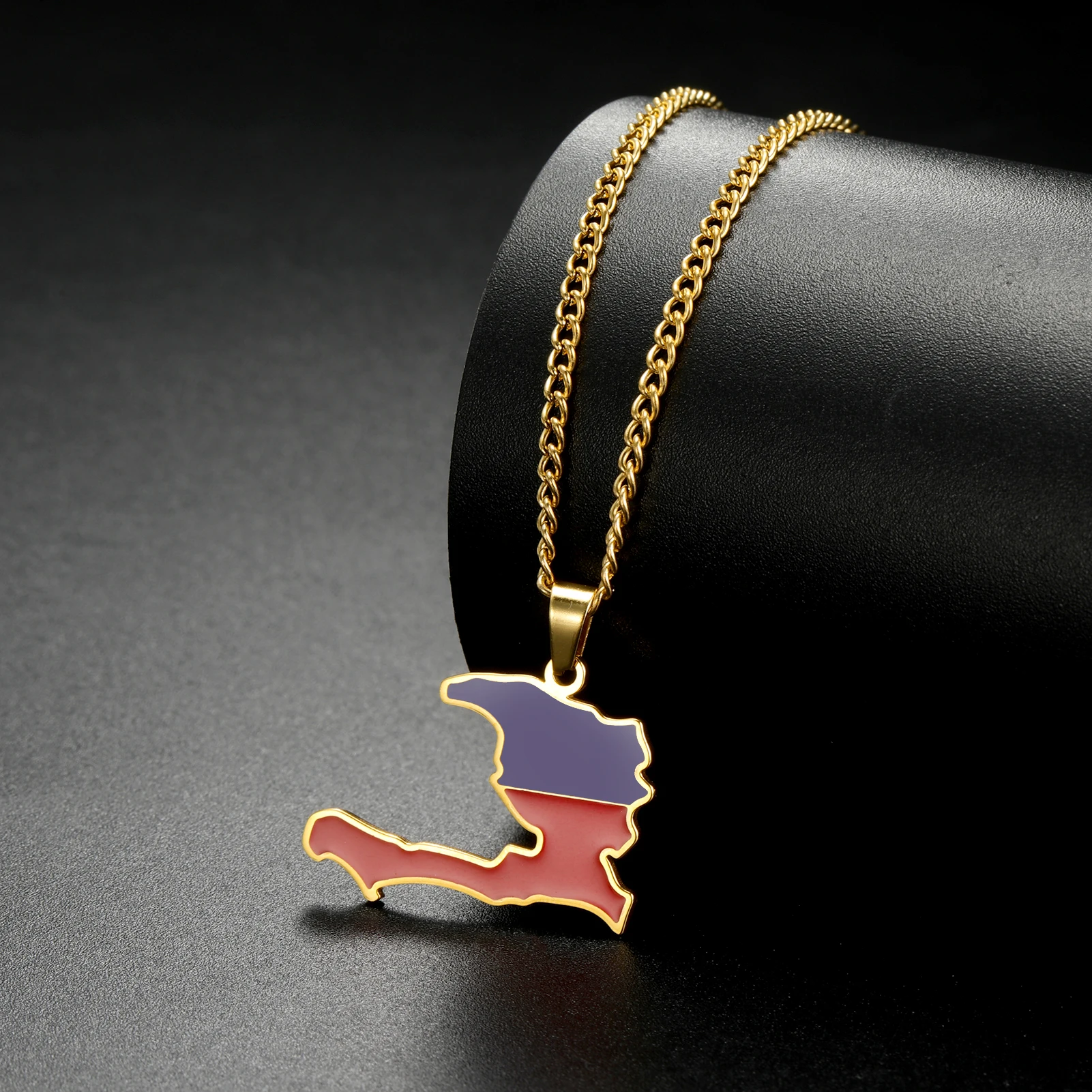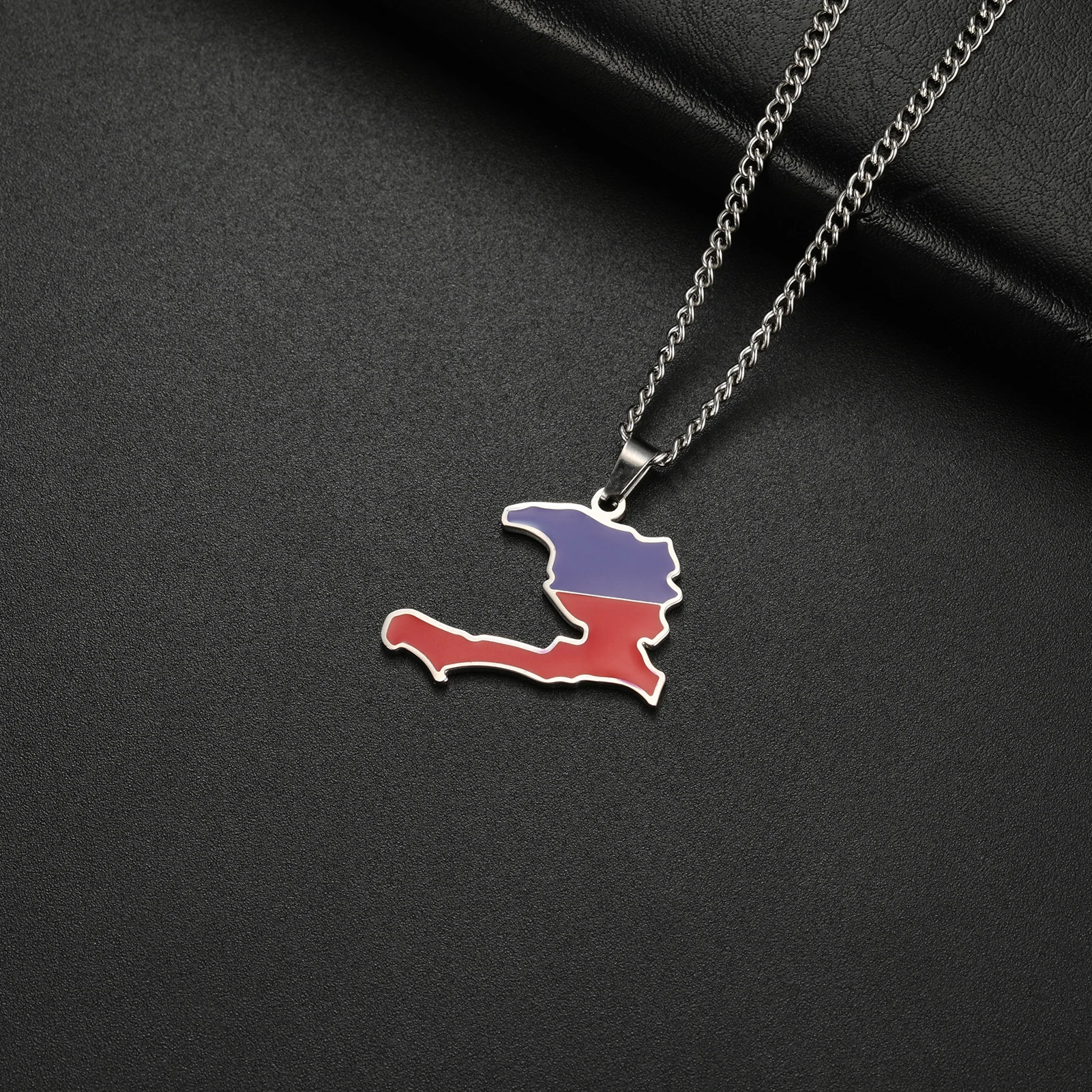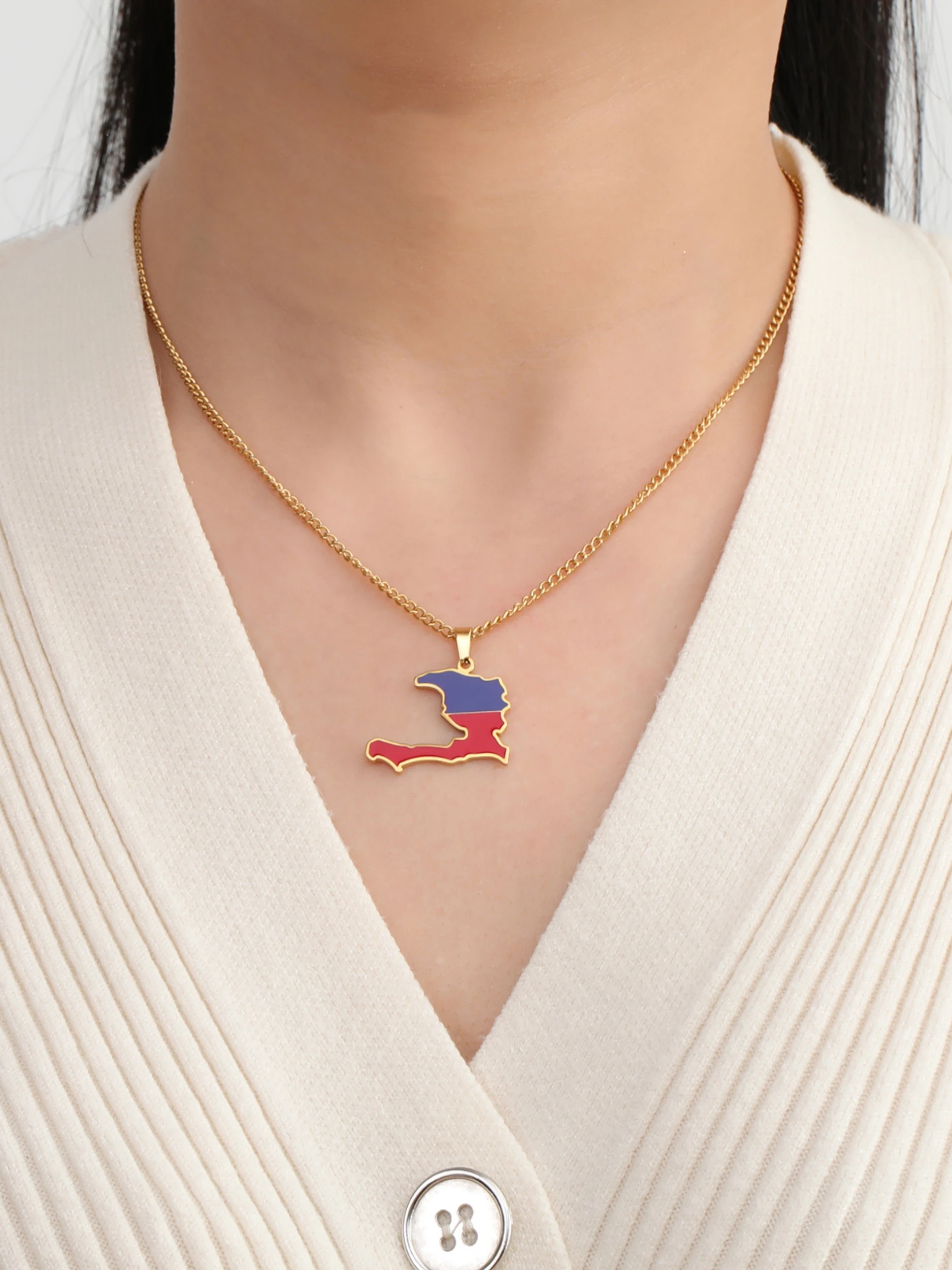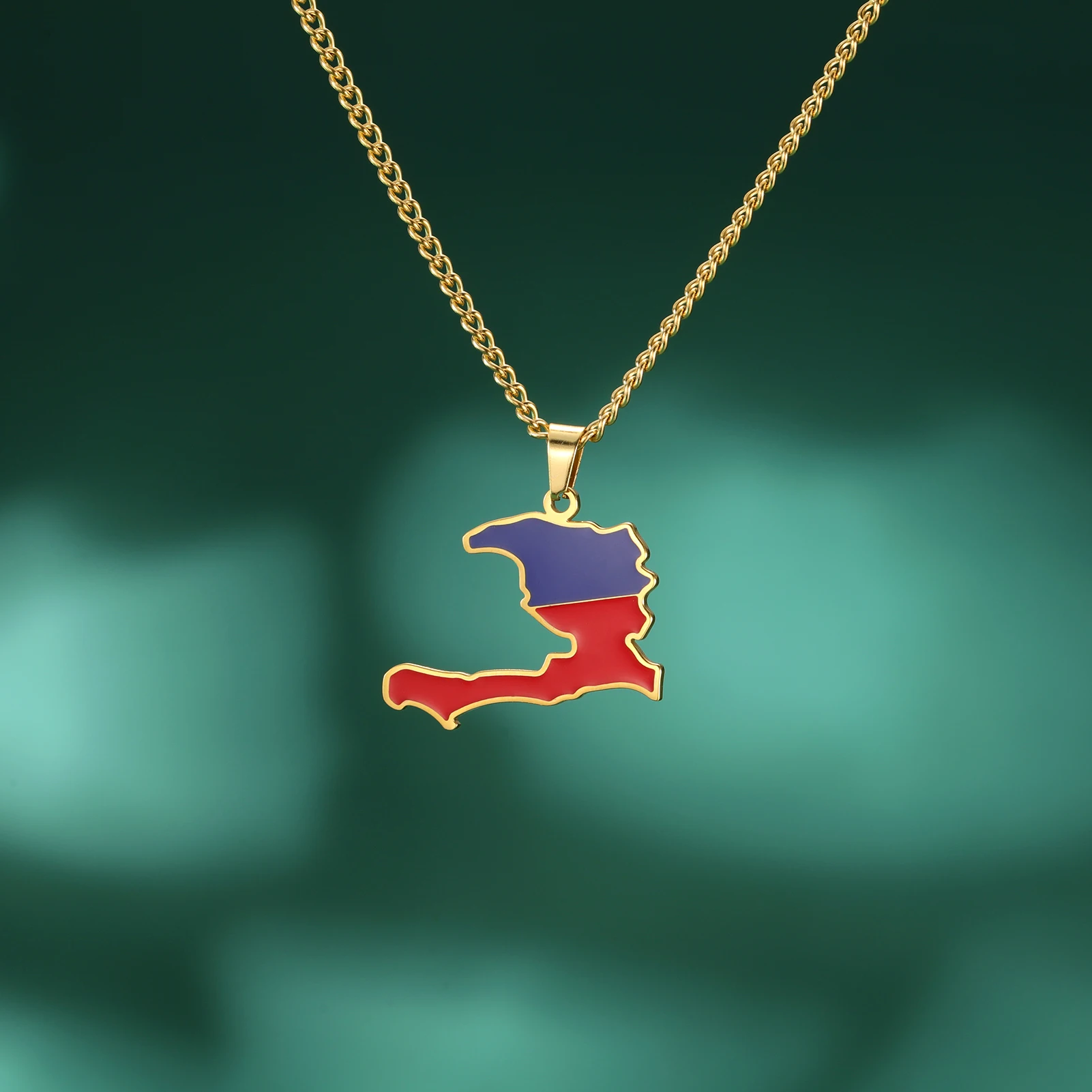 Haiti Map Color of the Haitian Flag Creative Design Pendant Necklace Women Men Stainless Steel Chain Jewelry Birthday Gift
