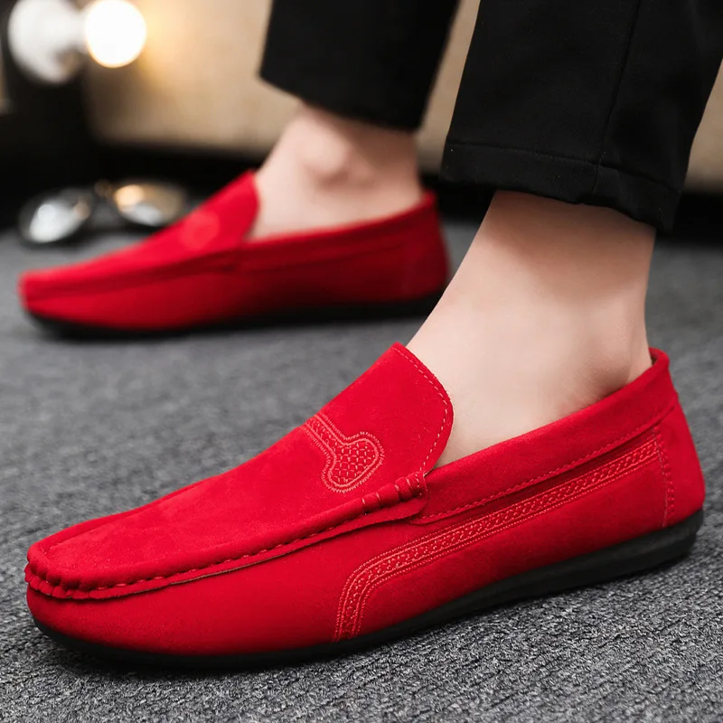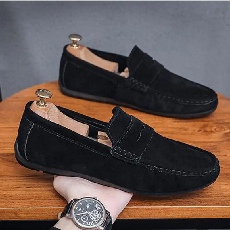 Spring Summer Blue Suede Loafers Men Slip On Soft Moccasins Breathable Flats Driving Shoes Men Leather Casual Shoes Handmade